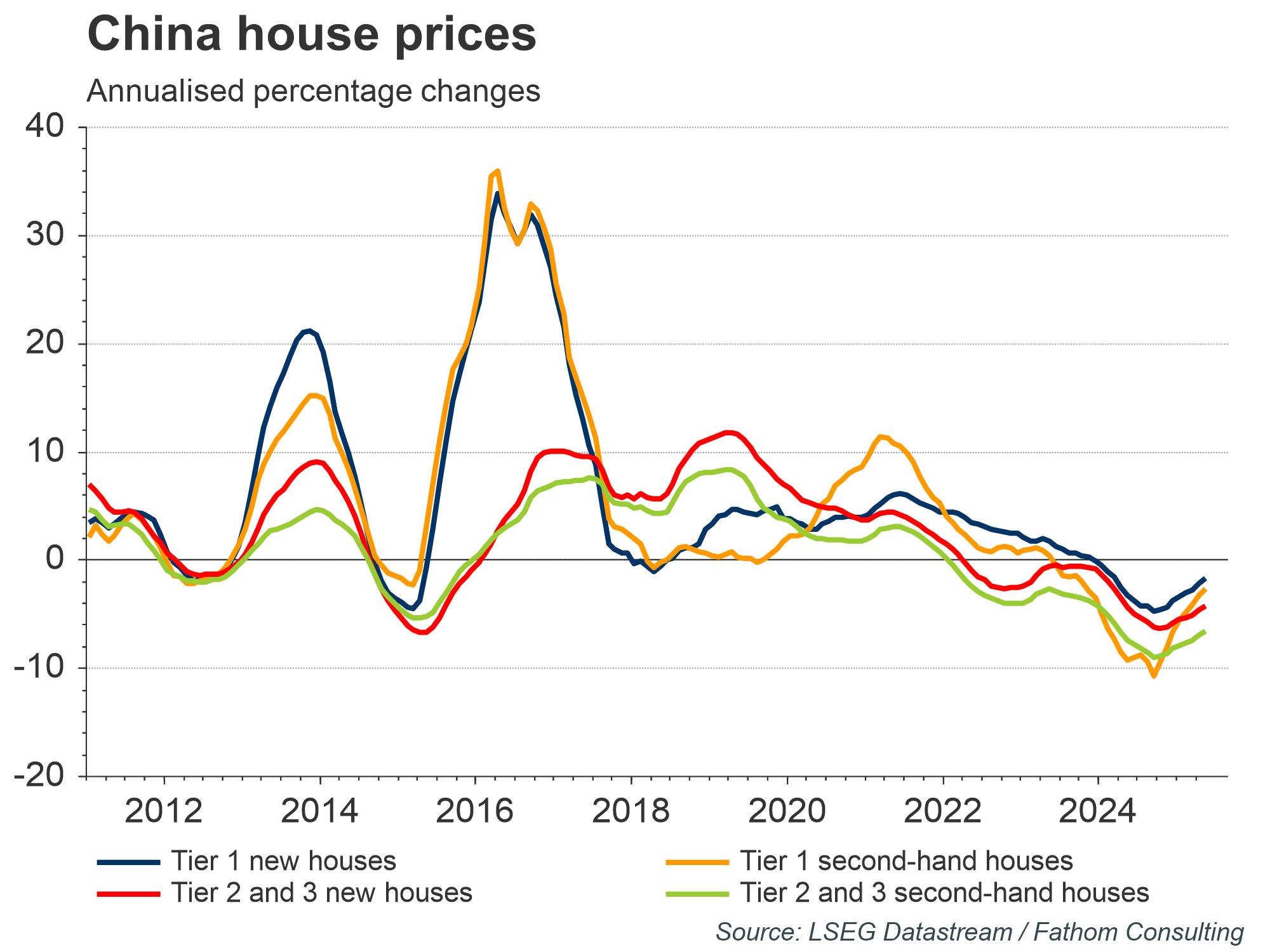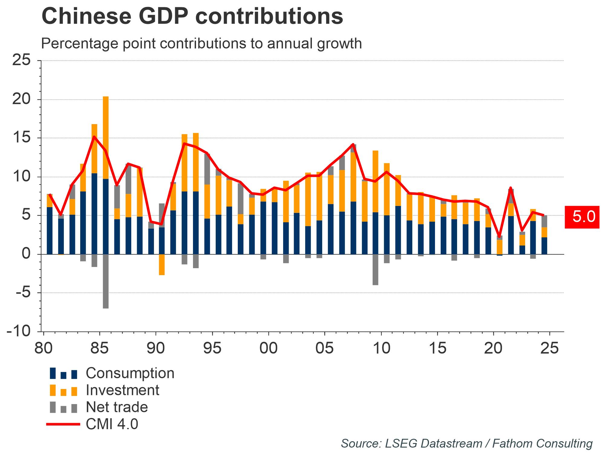 Based on official data and Fathom’s China Momentum Indicator (4.0), China appears so far to be weathering the economic storms of 2025. However, as well as internal drags on growth, such as its ongoing housing crisis, China’s export-led growth model is under attack from the US. Peaking at 145% in April, US tariffs on Chinese goods and China’s retaliatory tariffs on US goods have since retreated, following the agreement of a 90-day pause from early May. Tariff rates currently stand at 30% for Chinese exports to the US and 10% for US exports to China respectively. However, the latest news indicates the possibility of a re-escalation, with both countries accusing each other of holding back key inputs for manufacturing. A return to April’s tariff rates would weigh on Chinese exports, around 13% of which have historically been destined for the US. So, given its internal headwinds and with external gales picking up, where else can the economy of the Peoples Republic of China’s (PRC) turn to maintain its 5% growth target for 2025?